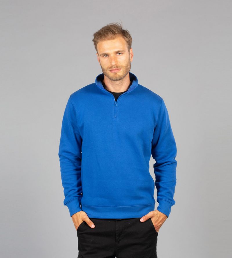 - Felpa 80% cotone 20% poliestere - Collo a lupetto in felpa - Zip corta - Polsini e fondo maglia in costina elasticizzata - Nastro di rinforzo interno collo - Cuciture ribattute - Il colore Melange è 60% cotone 40% polyestere